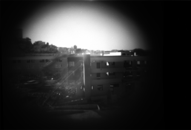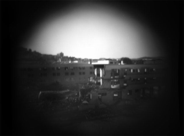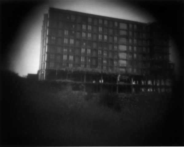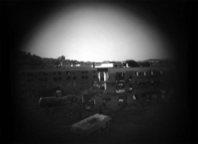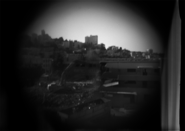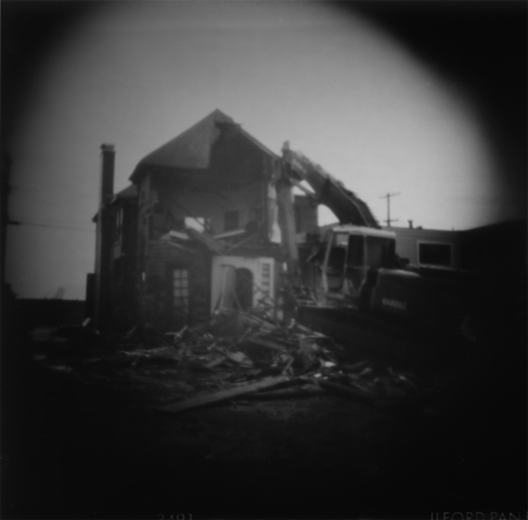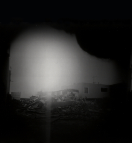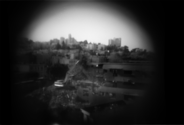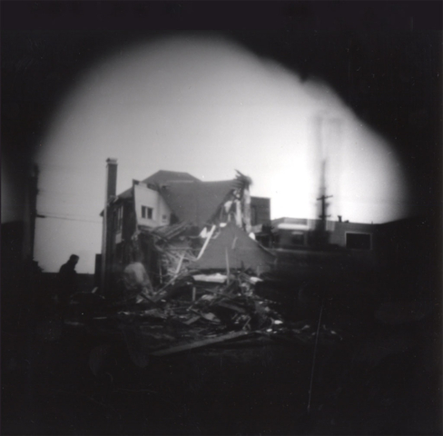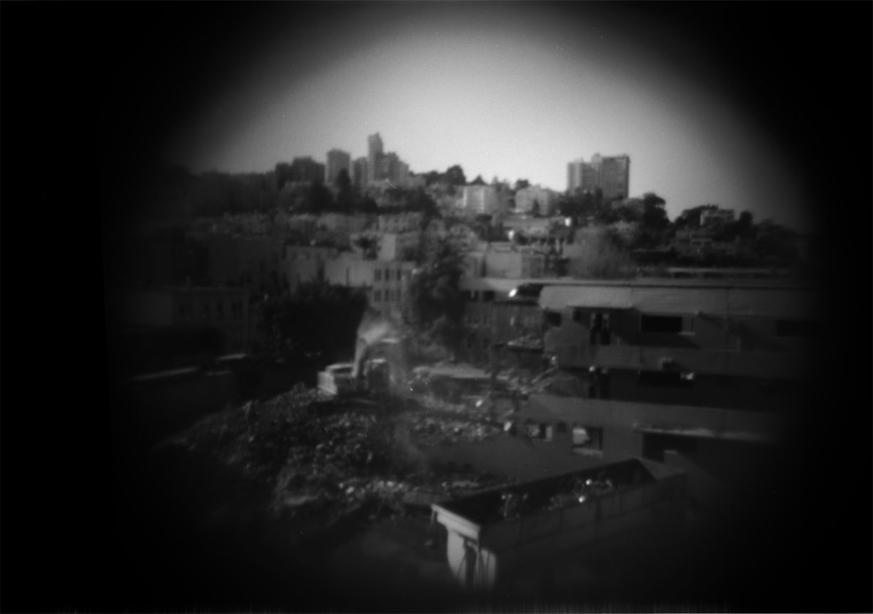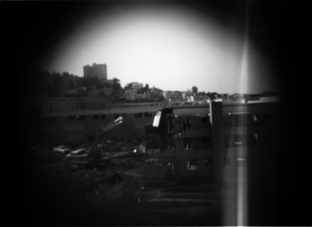 On January 15th, 2001, I used a pinhole camera to document the demolition of a San Francisco housing project in North Beach. Inadvertently, the death of a demolition laborer is recorded.